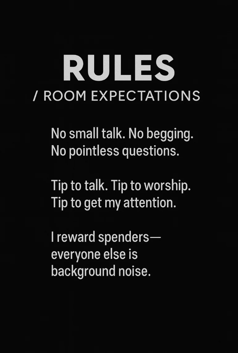 I’m a brat with standards—I don’t react to viewers, only spenders.